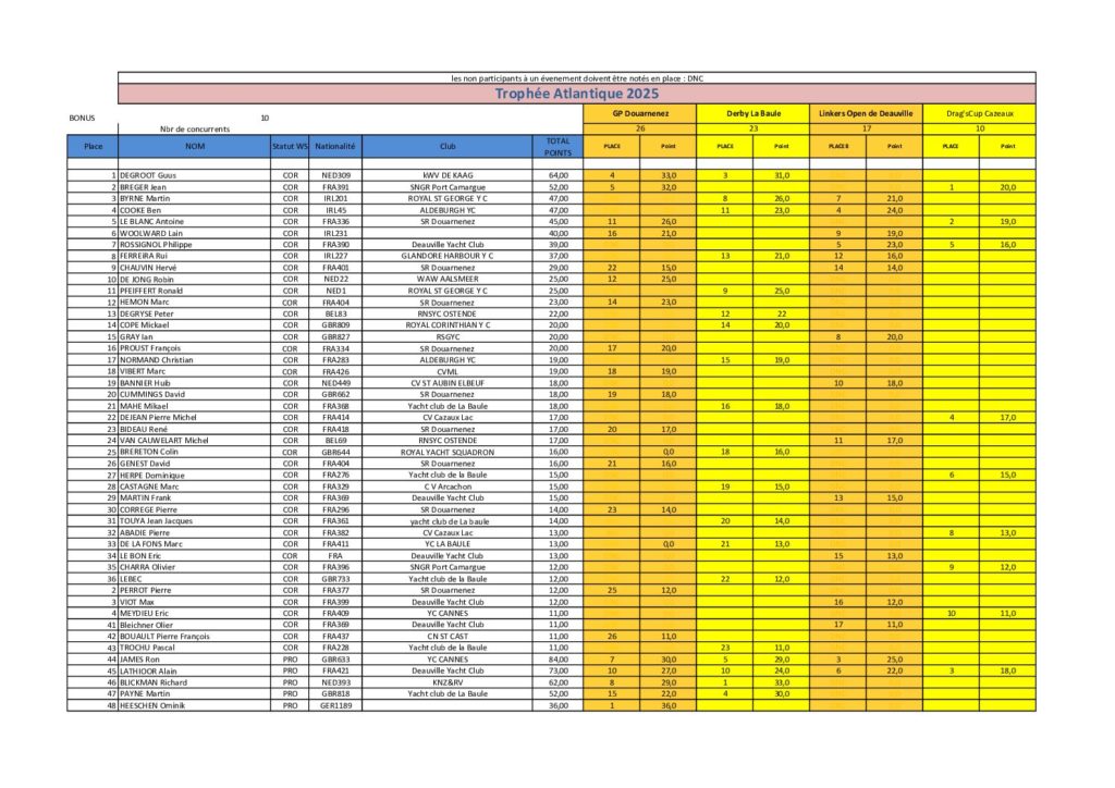 Le Trophée Atlantique est attribué à un barreur/barreuse de Dragon et son équipage, sans distinction de nationalité, selon le règlement établi par l’AFD. Les épreuves retenues pour l’attribution du Trophée doivent avoir été organisées par des Clubs de la façade Atlantique de la France exclusivement